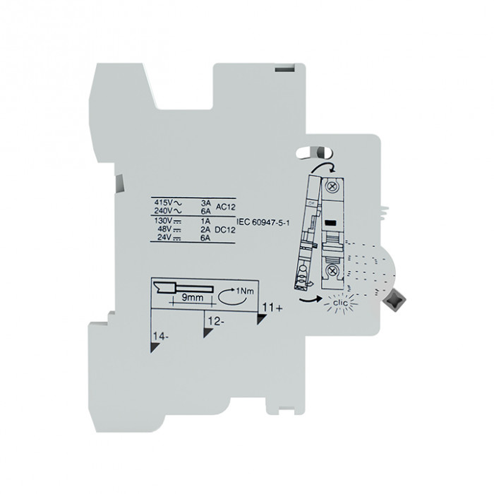 Контакт сигнальный AV-SD устанавливается с левой стороны к AV-6, AV-10, DV, DVA и информирует о срабатывании аппарата, к которому он присоединен, по аварии (КЗ, перегрузка, ток утечки).