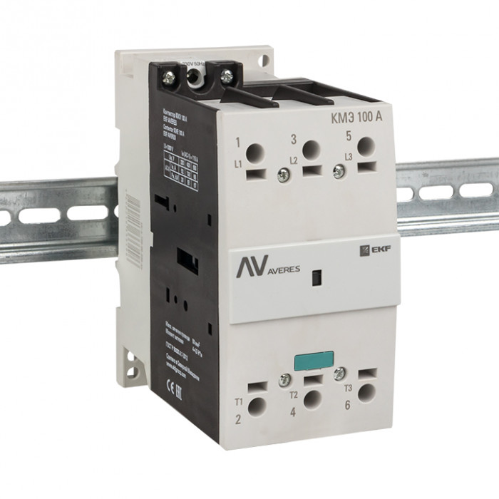 Контакторы КМЭ EKF AVERES состоят из корпуса, закрепленных в нем неподвижных контактов, подвижных контактов, которые закреплены в подвижной части магнитной системы. Неподвижная часть магнитной системы закреплена жестко в корпусе КМЭ. Пружина препятствует смыканию контактов. При подаче напряжения на катушку управления в магнитной системе контактора возникает магнитное поле, которое, преодолевая сопротивление пружины, смыкает магнитную систему и замыкает контакты. При отключении напряжения с катушки управления пружина размыкает контакты. Возможна коммутация алюминиевым и медным проводом.