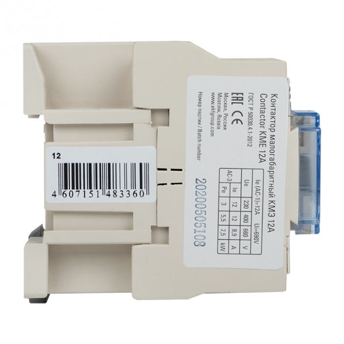 Контакторы КМЭ EKF PROxima состоят из корпуса, закрепленных в нем неподвижных контактов, подвижных контактов, которые закреплены в подвижной части магнитной системы. Неподвижная часть магнитной системы закреплена жестко в корпусе КМЭ. Пружина препятствует смыканию контактов. При подаче напряжения на катушку управления в магнитной системе контактора возникает магнитное поле, которое, преодолевая сопротивление пружины, смыкает магнитную систему и замыкает контакты. При отключении напряжения с катушки управления пружина размыкает контакты. Возможна коммутация алюминиевыми медным проводом.