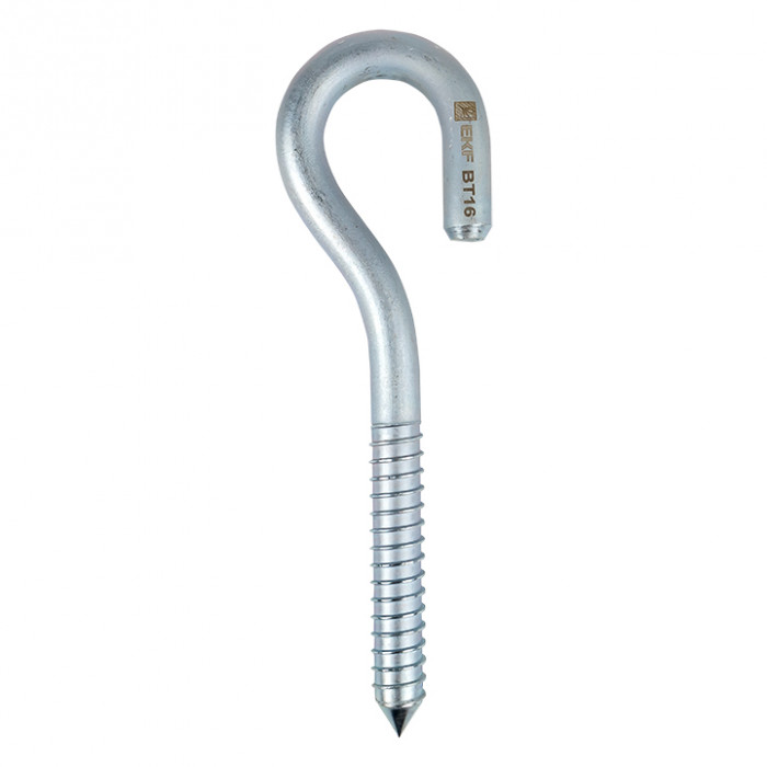 'Крюки с резьбой типа bt-8, bt-16. Артикулы: bt-8, bt-16, Крюки предназначены для крепления анкерных зажимов на деревянной стене здания или деревянных опорах.'