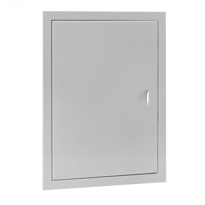 На дверце предусмотрен паз для удобного открывания люка. Закрытие дверцы производится путем фиксации ''шип - паз''. Габаритный размер, указанный в наименовании - это габарит внутренней части люка, монтируемой в нишу.