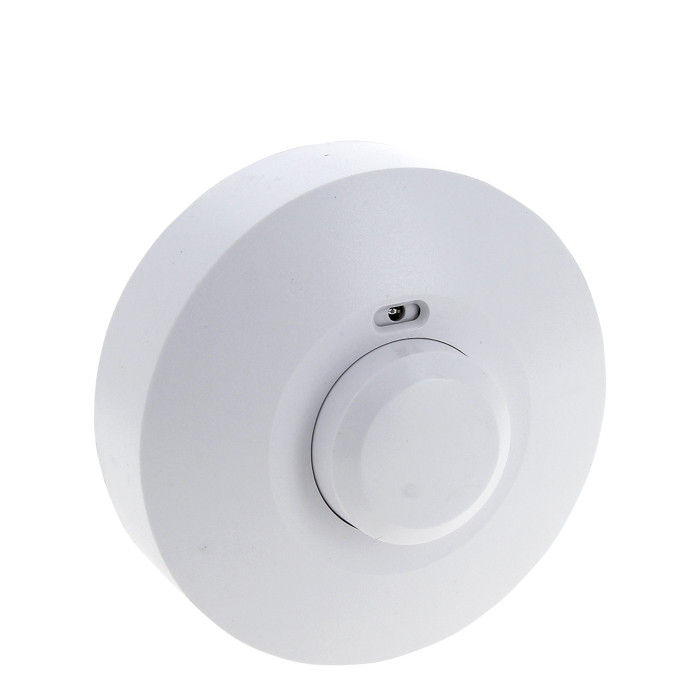 'Датчик движения микроволновый MW-703 предназначен для экономии электроэнергии за счет автоматического управления освещением и другими инженерными системами. Датчик реагирует на движение людей и других объектов в зоне действия сенсора, принцип работы датчика основан на генерировании высокочастотных электромагнитных волн и детектировании полученного эха. Таким образом микроволновые датчики имеют повышенную чувствительность и могут детектировать движение сквозь тонкие преграды (гипсокартон, стекло, подвесной потолок и т.д.). Датчик MW-703 предназначен для накладного монтажа на потолок. Рекомендуется использовать датчик в кладовках, гардеробных и других помещениях с временным пребыванием людей. Алгоритм работы: при возникновении движения в поле зрения датчика встроенное электромеханическое реле (рассчитано на полную мощность 1200Вт) коммутирует подключенную нагрузку. После этого нагрузка находится под напряжением в течение заданного времени (от 10 сек. до 15 минут, время настраивается) и выключается.'