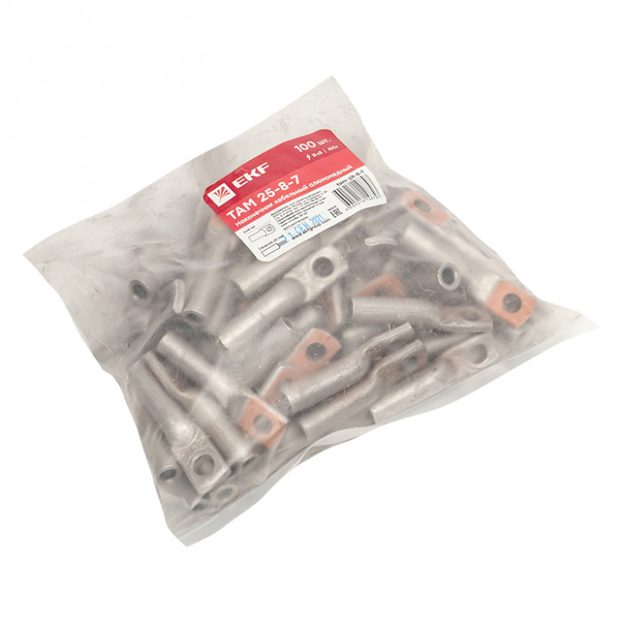 Наконечники кабельные алюмомедные (напыление) ТАМ EKF PROxima имеют медное покрытие контактной части, изготовленное методом газодинамического напыления. Вместо медно-алюминиевых наконечников могут применяться алюминиевые наконечники с защитным металлическим покрытием никелем или цинком.