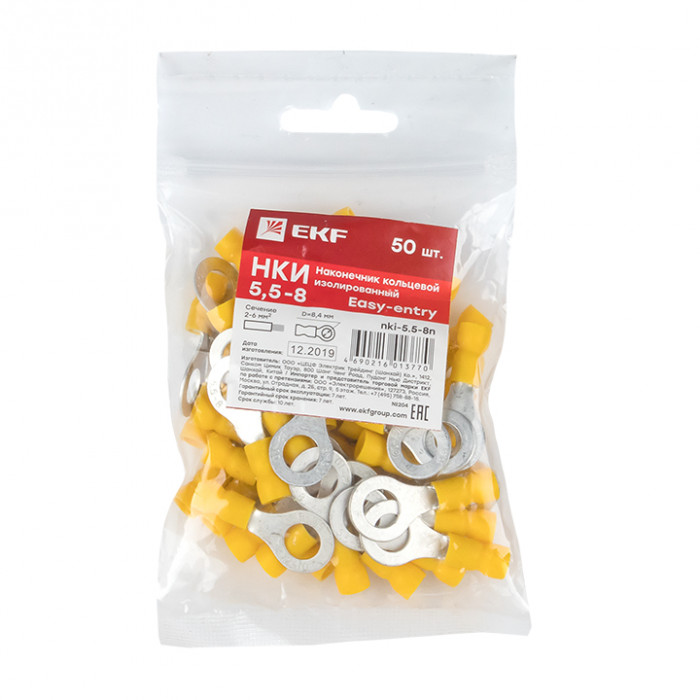 Наконечники кольцевые изолированные НКИ EKF PROxima и вилочные изолированные НВИ EKF PROxima предназначены для оконцевания многопроволочных (гибких) медных проводов и используются при монтаже электрических узлов, где предусмотрено соответствующее контактное соединение на основе винтовой фиксации. Кольцевые наконечники используются для стационарных подключений к электрооборудованию.При необходимости оперативных перекроссировок предпочтительно использование вилочных наконечников, поскольку в этом случае не требуется полный демонтаж крепежного соединения, достаточно лишь ослабить винтовую фиксацию.