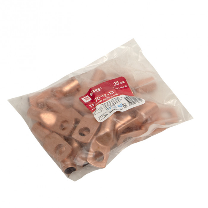 Наконечники медные ТМ EKF PROxima используются для оконцевания проводов и кабелей с медными жилами посредством опрессовки для последующего болтового соединения проводника с оборудованием или шиной.