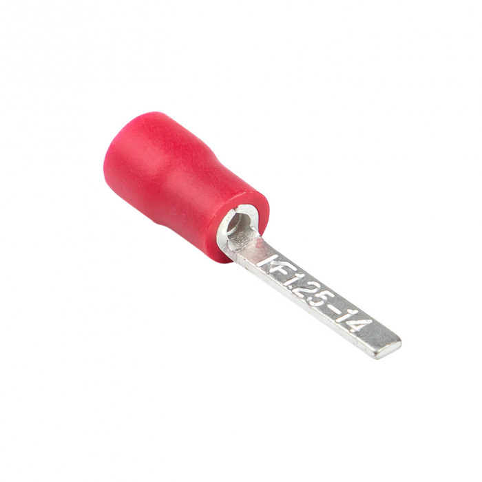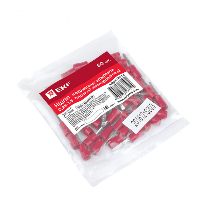 Наконечник штыревой плоский изолированный НШПИ EKF PROxima предназначен для оконцевания опрессовкой медных проводов и последующего крепежа наконечников к электрооборудованию с контактными гнездами штифтового типа (автоматическим выключателям, УЗО, клеммным блокам и т. п.). Опрессовка штыревых плоских изолирующих наконечников выполняется поверх ПВХ манжеты, а не металлической втулки, как у втулочных наконечников.