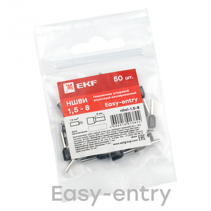 Одинарные и двойные втулочные наконечники (НШвИ и НШвИ2) EKF PROxima являются единственными специально разработанными наконечниками под опрессовку, которые полностью заменяют обязательный процесс облуживания многопроволочных медных проводов (типа ПВ-3, ПВС и т.п.) при монтаже различного электрооборудования. Втулочные наконечники состоят из медной луженой трубки, один конец которой развальцован для облегчения ввода многожильного провода и изолирующей манжеты из полипропилена.