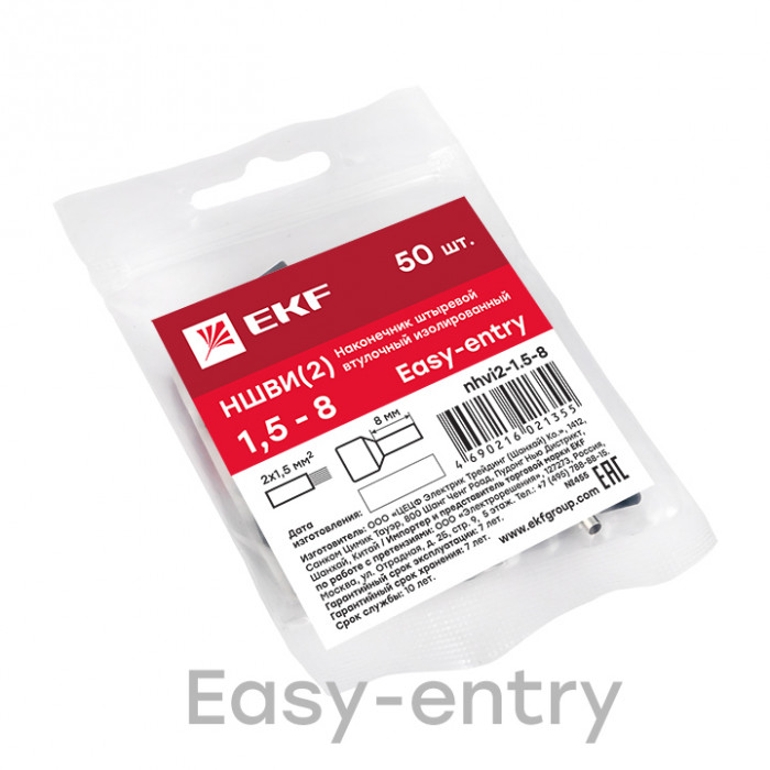Одинарные и двойные втулочные наконечники (НШвИ и НШвИ2) EKF PROxima являются единственными специально разработанными наконечниками под опрессовку, которые полностью заменяют обязательный процесс облуживания многопроволочных медных проводов (типа ПВ-3, ПВС и т.п.) при монтаже различного электрооборудования. Втулочные наконечники состоят из медной луженой трубки, один конец которой развальцован для облегчения ввода многожильного провода и изолирующей манжеты из полипропилена.