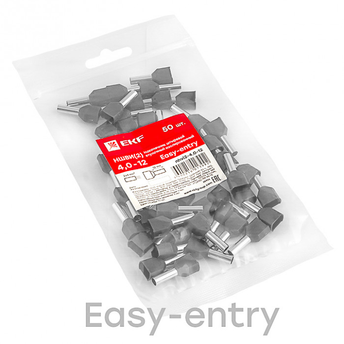 Одинарные и двойные втулочные наконечники (НШвИ и НШвИ2) EKF PROxima являются единственными специально разработанными наконечниками под опрессовку, которые полностью заменяют обязательный процесс облуживания многопроволочных медных проводов (типа ПВ-3, ПВС и т.п.) при монтаже различного электрооборудования. Втулочные наконечники состоят из медной луженой трубки, один конец которой развальцован для облегчения ввода многожильного провода и изолирующей манжеты из полипропилена.