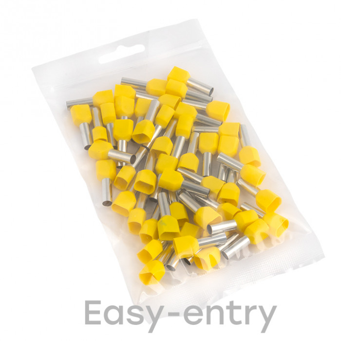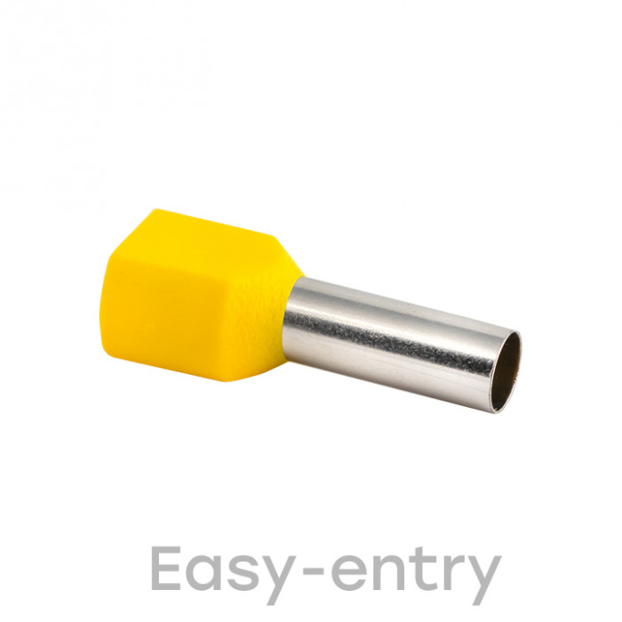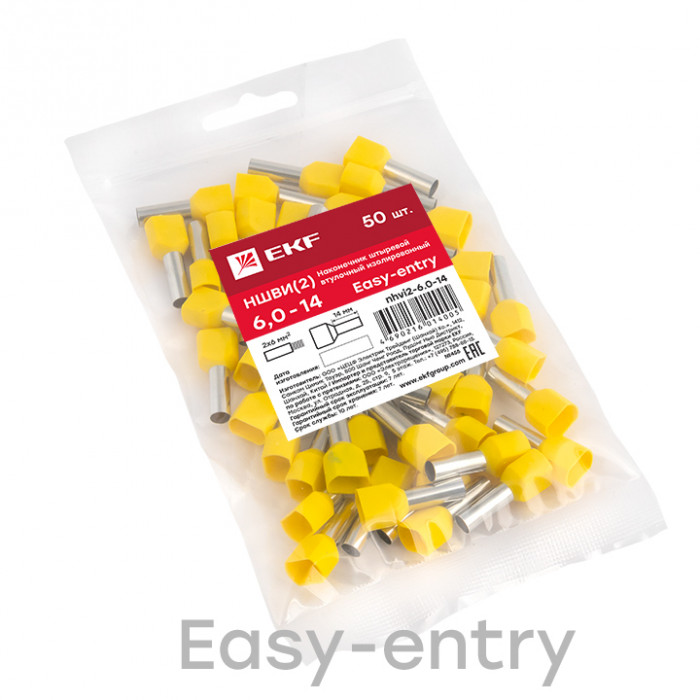 Одинарные и двойные втулочные наконечники (НШвИ и НШвИ2) EKF PROxima являются единственными специально разработанными наконечниками под опрессовку, которые полностью заменяют обязательный процесс облуживания многопроволочных медных проводов (типа ПВ-3, ПВС и т.п.) при монтаже различного электрооборудования. Втулочные наконечники состоят из медной луженой трубки, один конец которой развальцован для облегчения ввода многожильного провода и изолирующей манжеты из полипропилена.