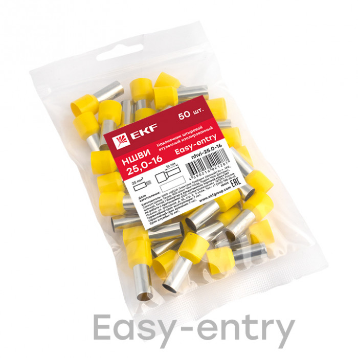 Наконечник штыревой втулочный изолированный НШвИ 25,0-16 (50шт.) EKF PROxima