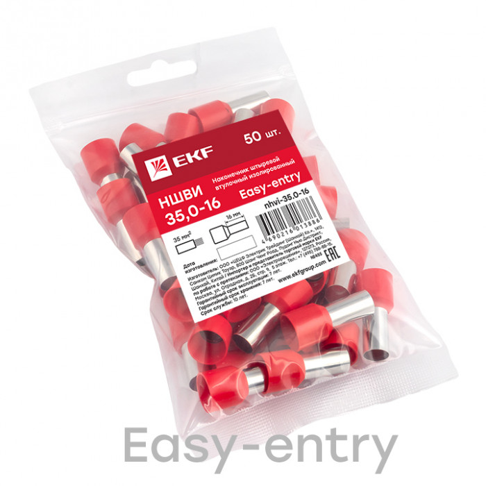 Наконечник штыревой втулочный изолированный НШвИ 35,0-16 (50шт.) EKF PROxima