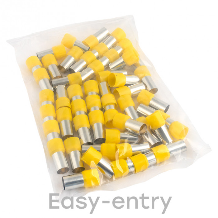 Одинарные и двойные втулочные наконечники (НШвИ и НШвИ2) EKF PROxima являются единственными специально разработанными наконечниками под опрессовку, которые полностью заменяют обязательный процесс облуживания многопроволочных медных проводов (типа ПВ-3, ПВС и т.п.) при монтаже различного электрооборудования. Втулочные наконечники состоят из медной луженой трубки, один конец которой развальцован для облегчения ввода многожильного провода и изолирующей манжеты из полипропилена.