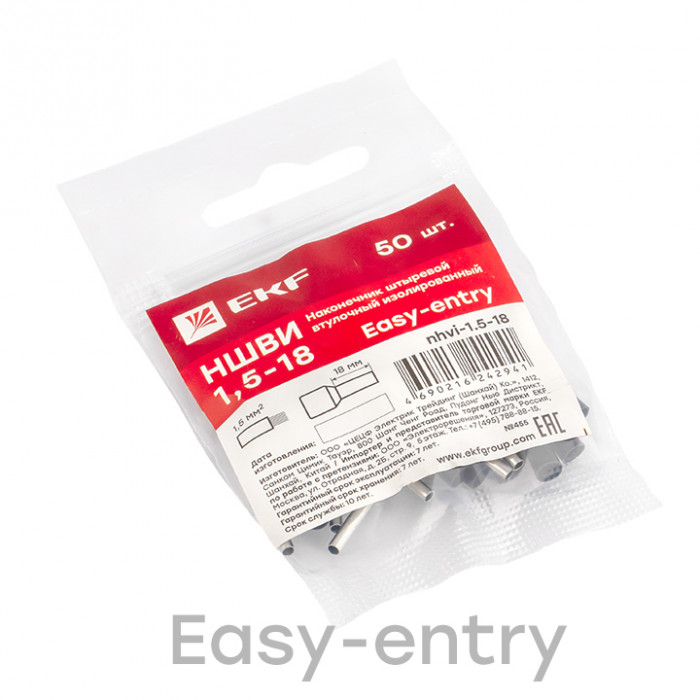 Одинарные и двойные втулочные наконечники (НШвИ и НШвИ2) EKF PROxima являются единственными специально разработанными наконечниками под опрессовку, которые полностью заменяют обязательный процесс облуживания многопроволочных медных проводов (типа ПВ-3, ПВС и т.п.) при монтаже различного электрооборудования. Втулочные наконечники состоят из медной луженой трубки, один конец которой развальцован для облегчения ввода многожильного провода и изолирующей манжеты из полипропилена.