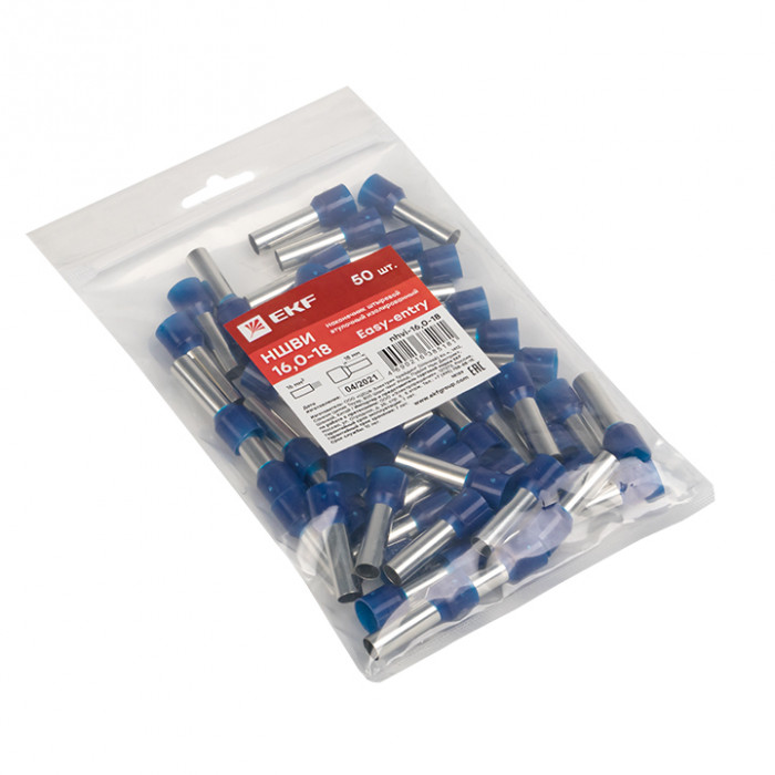 Одинарные и двойные втулочные наконечники (НШвИ и НШвИ2) EKF PROxima являются единственными специально разработанными наконечниками под опрессовку, которые полностью заменяют обязательный процесс облуживания многопроволочных медных проводов (типа ПВ-3, ПВС и т.п.) при монтаже различного электрооборудования. Втулочные наконечники состоят из медной луженой трубки, один конец которой развальцован для облегчения ввода многожильного провода и изолирующей манжеты из полипропилена.