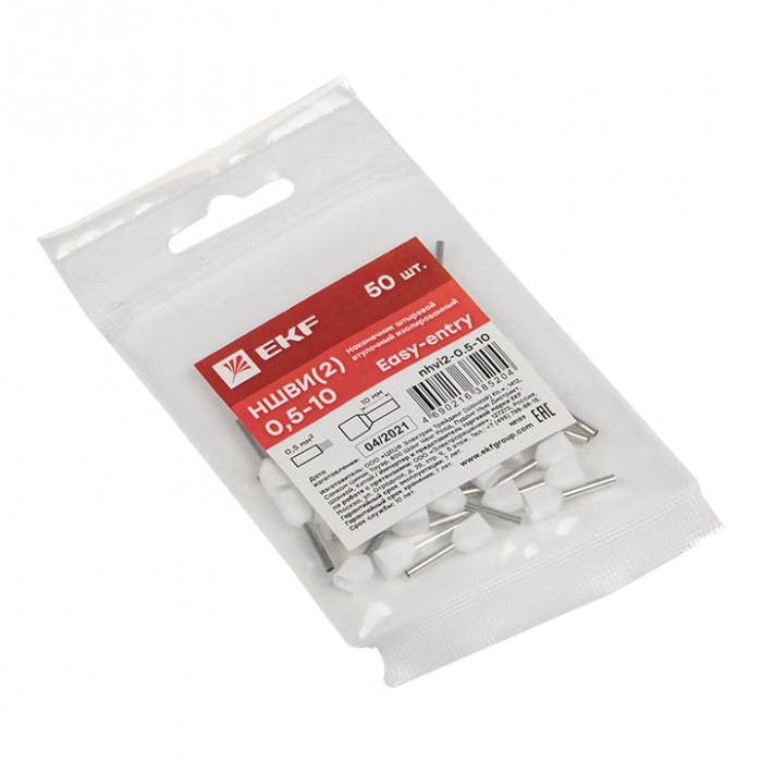 Одинарные и двойные втулочные наконечники (НШвИ и НШвИ2) EKF PROxima являются единственными специально разработанными наконечниками под опрессовку, которые полностью заменяют обязательный процесс облуживания многопроволочных медных проводов (типа ПВ-3, ПВС и т.п.) при монтаже различного электрооборудования. Втулочные наконечники состоят из медной луженой трубки, один конец которой развальцован для облегчения ввода многожильного провода и изолирующей манжеты из полипропилена.