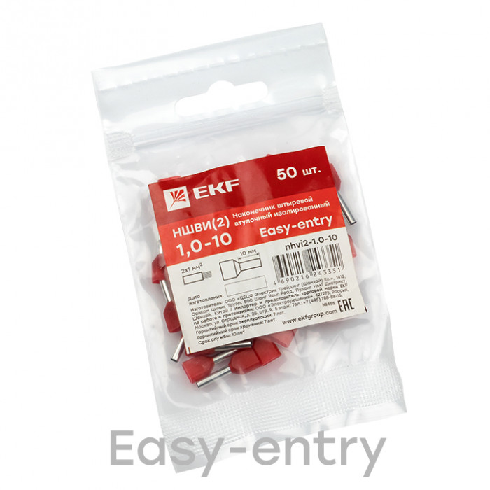 Одинарные и двойные втулочные наконечники (НШвИ и НШвИ2) EKF PROxima являются единственными специально разработанными наконечниками под опрессовку, которые полностью заменяют обязательный процесс облуживания многопроволочных медных проводов (типа ПВ-3, ПВС и т.п.) при монтаже различного электрооборудования. Втулочные наконечники состоят из медной луженой трубки, один конец которой развальцован для облегчения ввода многожильного провода и изолирующей манжеты из полипропилена.