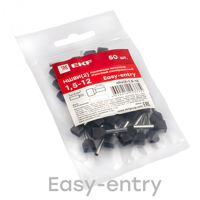 Одинарные и двойные втулочные наконечники (НШвИ и НШвИ2) EKF PROxima являются единственными специально разработанными наконечниками под опрессовку, которые полностью заменяют обязательный процесс облуживания многопроволочных медных проводов (типа ПВ-3, ПВС и т.п.) при монтаже различного электрооборудования. Втулочные наконечники состоят из медной луженой трубки, один конец которой развальцован для облегчения ввода многожильного провода и изолирующей манжеты из полипропилена.