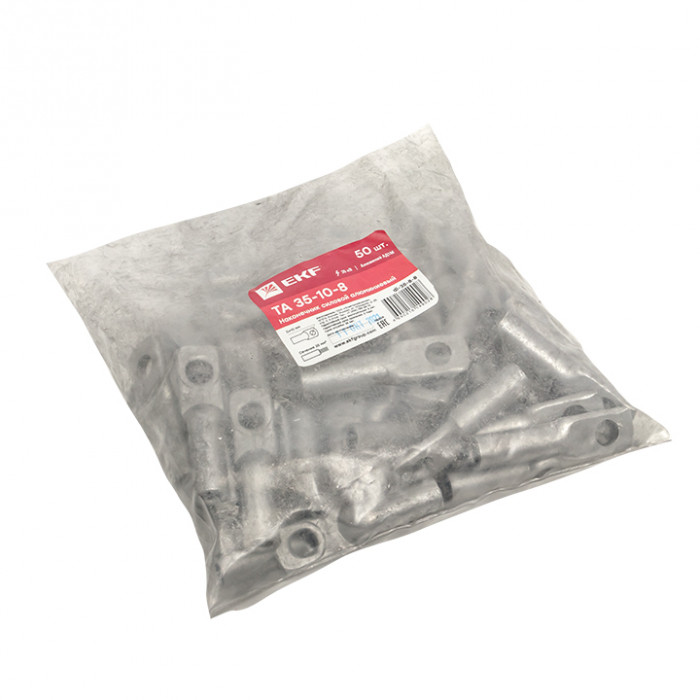 Наконечники алюминиевые ТА EKF PROxima используются для оконцевания проводов и кабелей с алюминиевыми жилами посредством опрессовки для последующего болтового соединения проводника с оборудованием или шиной.