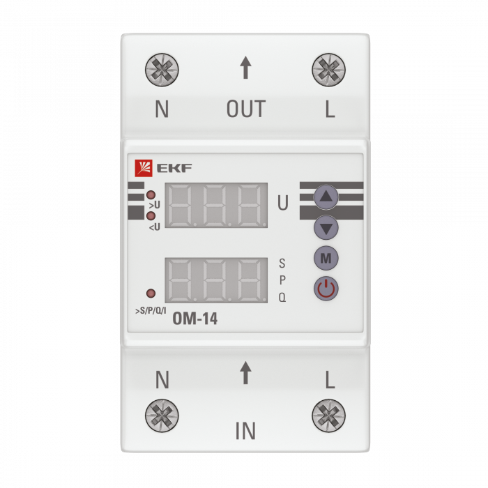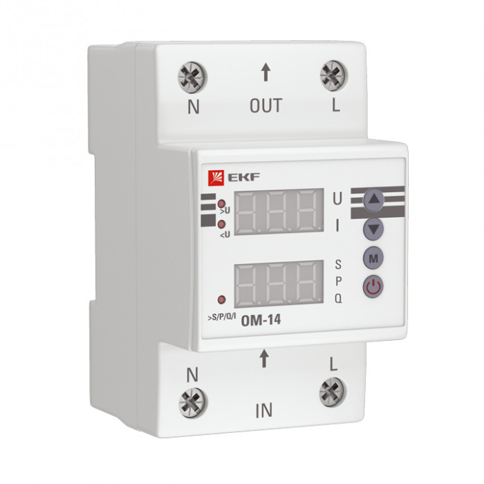 Ограничители мощности ОМ-3 и ОМ-14 EKFPROxima – это чувствительные приборы, которые отключат оборудование при выходе потребляемой мощности за допустимые значения. В функции ОМ-3 входит измерение мощности и срабатывание при превышении заданного параметра. ОМ-14 обладает расширенным функционалом. Это устройство с удобным управлением и двумя цифровыми дисплеями измеряет активную, реактивную и полную мощности, а также работает в режимах вольтметра и амперметра. ОМ-14 отключает оборудование при превышении порога мощности, защищает его от повышенного и пониженного напряжения. Чтобы подключить ОМ-14 в сети с током до 63А не потребуется устанавливать дополнительный контактор. Благодаря встроенному трансформатору прибор рассчитан на максимальный ток 80А. Гарантия на ОМ-3 и ОМ-14 составляет 7 лет. Особенности ограничителей мощности ОМ-3 и ОМ-14 EKFPROxima: - Легкий монтаж и удобная настройка - Светодиодная индикация состояния реле - В ОМ-14 отображение напряжения, тока и мощности - В ОМ-14 измерение активной, реактивной и полной мощности - Возможность коммутации алюминиевым и медным проводом