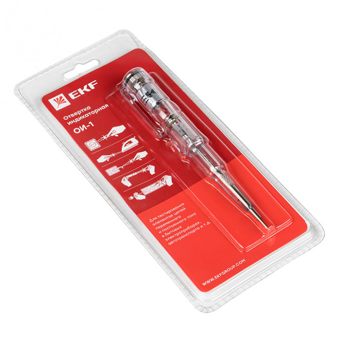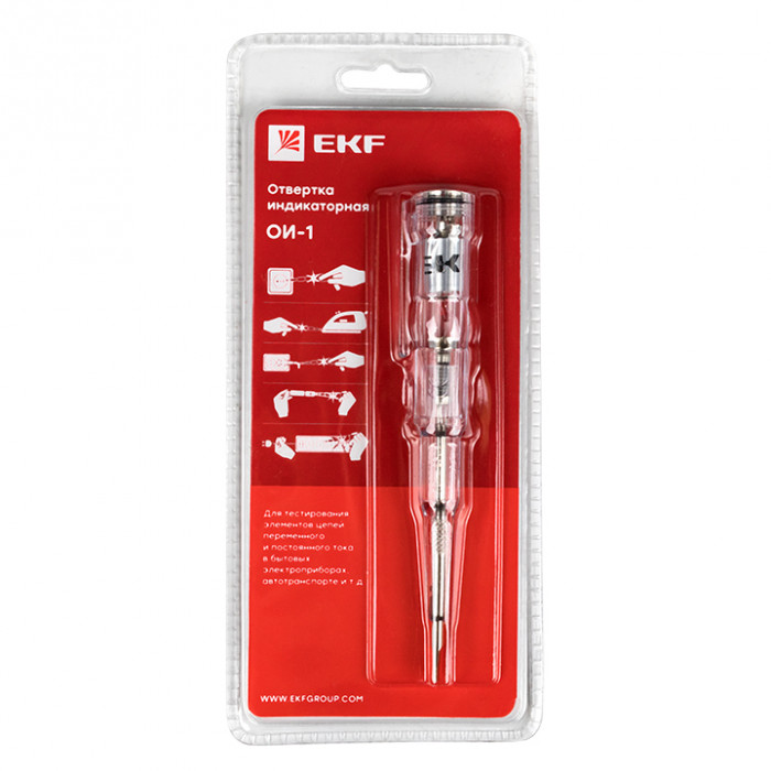 Отвертка индикаторная EKF PROxima – распространенное устройство для безопасного определения контактным и бесконтактным способом наличия электрического тока в электрических сетях с напряжением 220 В, а также прозвонки целостности электрических цепей (электрических лампочек, предохранителей, проводов, вилок и т. д.).