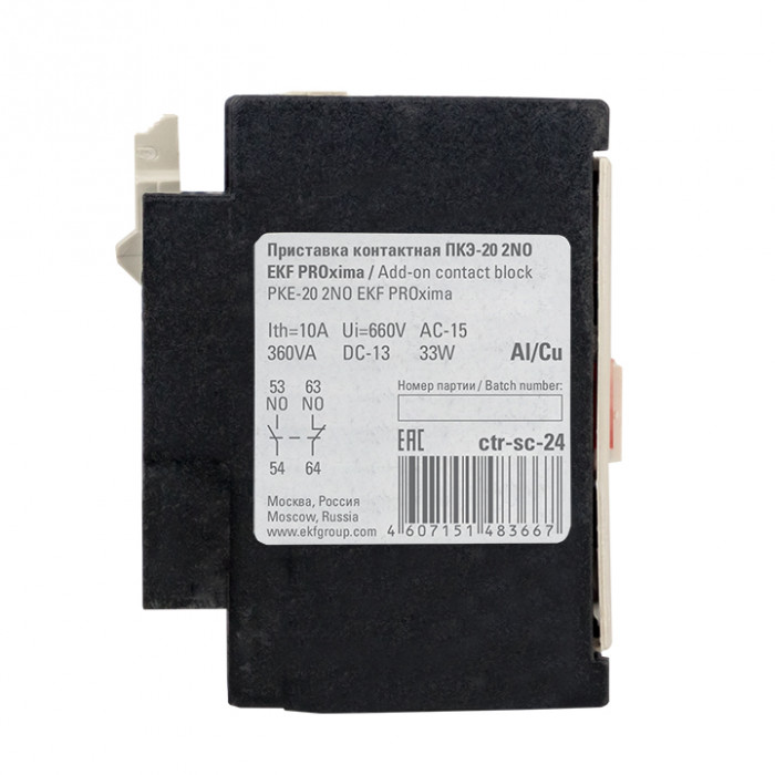 Приставки контактные предназначены для увеличения количества вспомогательных контактов контакторов КМЭ EKF PROxima и КТЭ EKF PROxima. На каждый из контакторов можно установить 2- или 4-контактную приставку с различным набором размыкающих и замыкающих контактов. Контактные приставки механически соединяются с контакторами и фиксируются при помощи защелки.