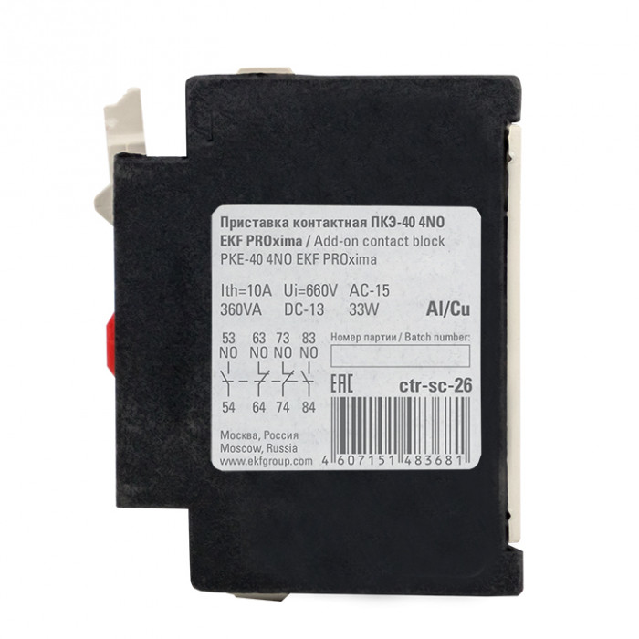 Приставки контактные предназначены для увеличения количества вспомогательных контактов контакторов КМЭ EKF PROxima и КТЭ EKF PROxima. На каждый из контакторов можно установить 2- или 4-контактную приставку с различным набором размыкающих и замыкающих контактов. Контактные приставки механически соединяются с контакторами и фиксируются при помощи защелки.