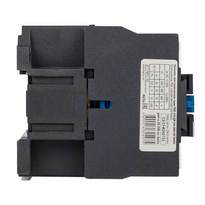 Пускатели ПМЛ EKF Basic состоят из корпуса, закрепленных в нем неподвижных контактов, подвижных контактов, которые закреплены в подвижной части магнитной системы. Неподвижная часть магнитной системы закреплена жестко в корпусе ПМЛ. Пружина препятствует смыканию контактов. При подаче напряжения на катушку управления в магнитной системе пускателя возникает магнитное поле, которое, преодолевая сопротивление пружины, смыкает магнитную систему и замыкает контакты. При отключении напряжения с катушки управления пружина размыкает контакты. Различия между контакторами ПМЛ Basic и КМЭ PROxima состоит в разной коммутационной износостойкости. Если необходим контактор для жестких условий работы с частым включением, следует применять КМЭ EKF PROxima. Возможна коммутация алюминиевым и медным проводом.