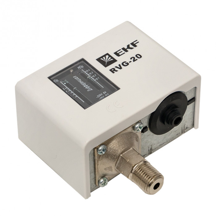 Механическое реле избыточного давления (прессостат) RVG-20 предназначено для коммутации электрических цепей в зависимости от изменения давления жидких и газообразных сред в системах теплоснабжения и водоснабжения. Реле давления RVG-20 применяется в качестве устройства аварийной сигнализации для контроля напора воды в системе водоснабжения, контроля холостого хода насосов, контроля наполненности ресиверов компрессоров, управления подпиткой системы ИТП, ЦТП