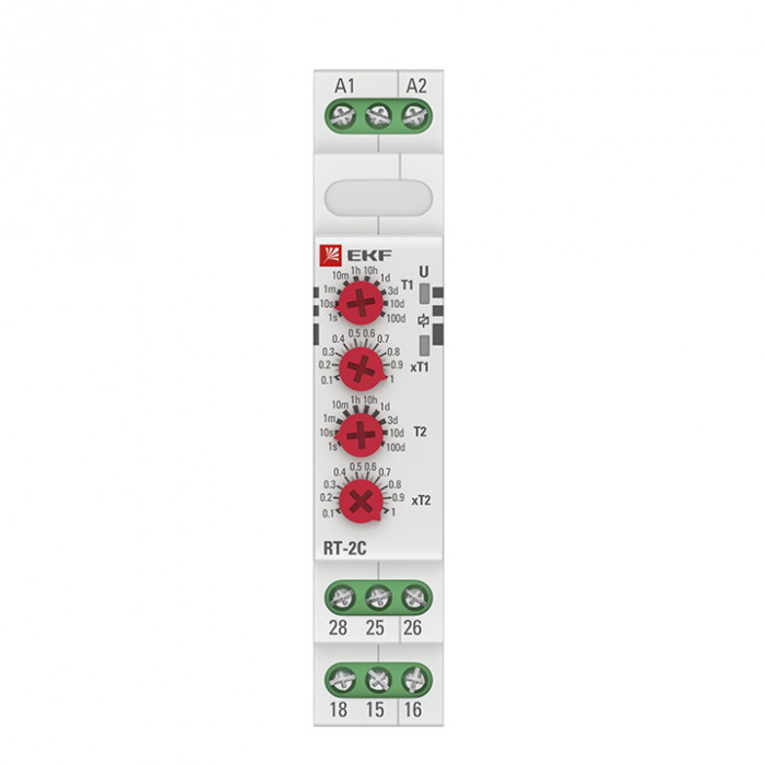 Реле времени RT-2C EKF PROxima является электронным коммутационным аппаратом с регулируемой установкой времени. Реле предназначено для создания циклической работы схемы с задержкой на включение. Переключение диапазонов времени производится с помощью поворотных регуляторов, расположенных на лицевой поверхности реле.
