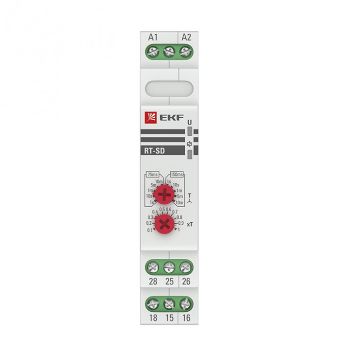 Реле времени RT-SBA EKF PROxima является электронным коммутационным аппаратом с регулируемой установкой времени. Реле предназначено для включения нагрузки с задержкой времени включения. Переключение диапазона времени производится с помощью поворотного регулятора, расположенного на лицевой поверхности реле.