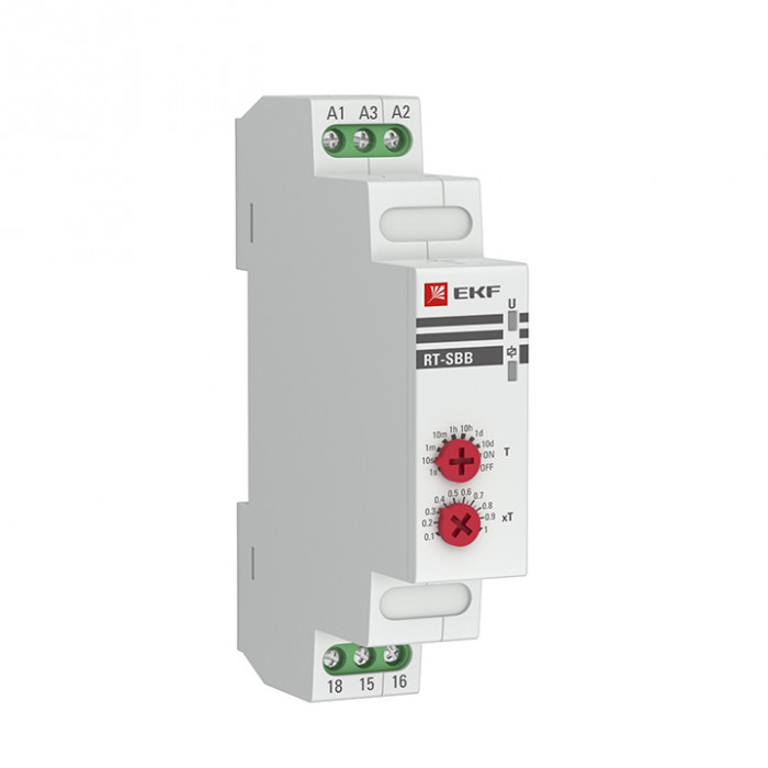 Реле времени RT-SBA EKF PROxima является электронным коммутационным аппаратом с регулируемой установкой времени. Реле предназначено для включения нагрузки с задержкой времени включения. Переключение диапазона времени производится с помощью поворотного регулятора, расположенного на лицевой поверхности реле.