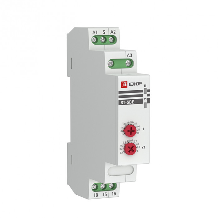 Реле времени RT-SBA EKF PROxima является электронным коммутационным аппаратом с регулируемой установкой времени. Реле предназначено для включения нагрузки с задержкой времени включения. Переключение диапазона времени производится с помощью поворотного регулятора, расположенного на лицевой поверхности реле.