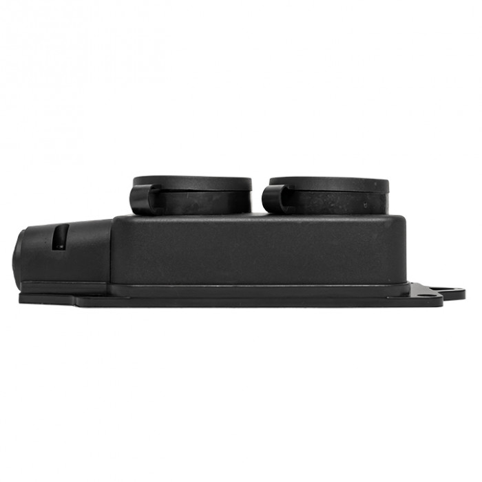 'Двухместная розетка (колодка) RPS-018 Basic предназначена для создания точки подключения к электрической сети. Может применяться как в мобильном, так и в стационарном исполнении (крепление к вертикальной или горизонтальной поверхности). Позволяет подключать до двух приборов одновременно с сумарным током потребления 16А к сети 230В / 50Гц. Колодка имеет кабельный ввод и каждое гнездо закрывается защитной крышкой, что позволяет обеспечить степень защиты IP44 даже в нерабочем положении. Соответствует стандарту Shuko. Применяется совместно с вилками RPS-011 и RPS-017 или другими вилками, соответствующими стандарту Schucko.'