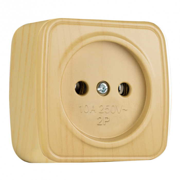 Розетка 1-местная ОП Минск 10А без заземления светлое дерево EKF