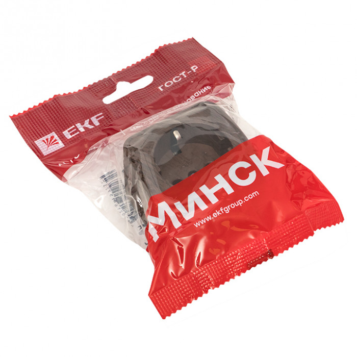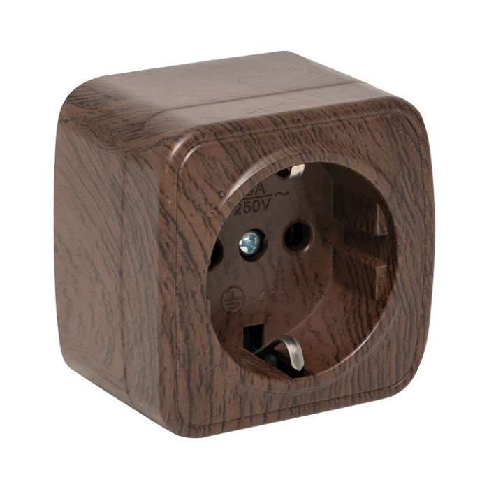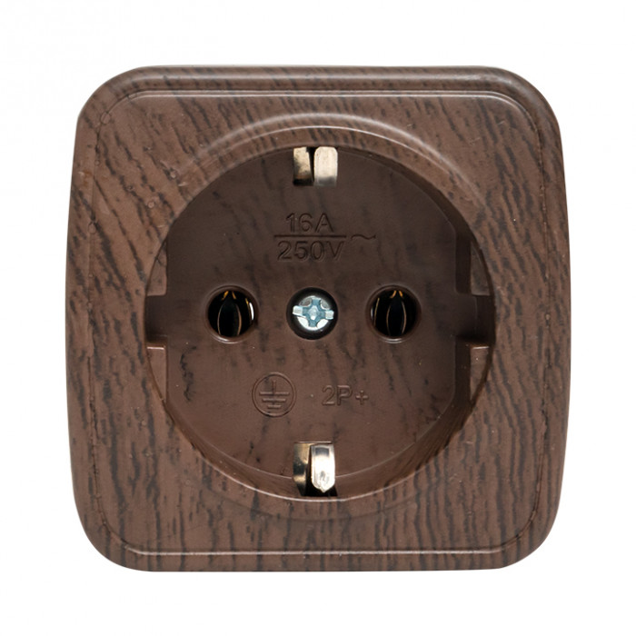 Розетка 1-местная ОП Минск 16А с заземлением тёмное дерево EKF