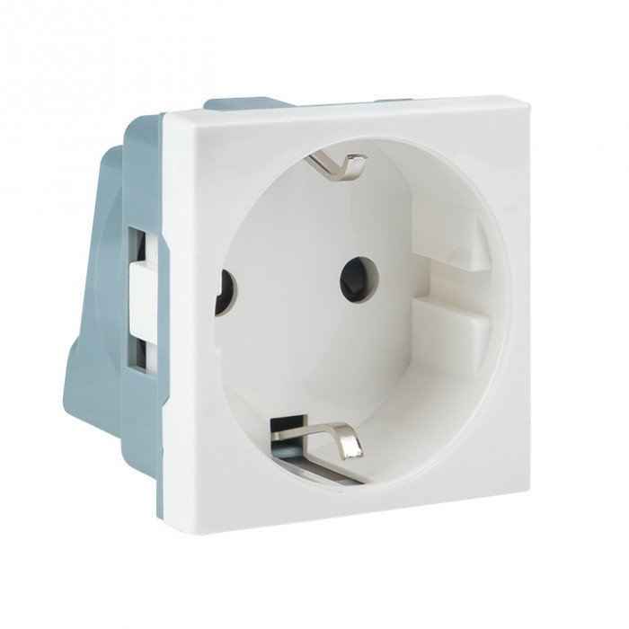 Розетка 45х45 с заземлением, прямая, белая EKF
