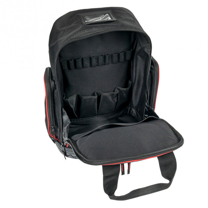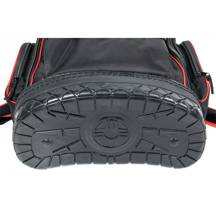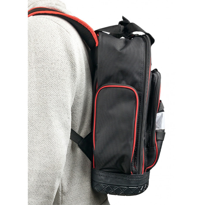 'Рюкзак монтажника универсальный с резиновым дном С-07 EKF для удобного и комфортного перемещения инструмента к месту выполнения работ. Мягкие анатомические вставки на спинке и лямках рюкзака для комфорта. Усиленная ручка для переноски, способная выдержать большой вес инструмента с тканевой застежкой, уменьшающей давление на руку (до 25 кг) Двойная ручка способствует распределению груза по центру масс, что снижает риск обрыва ручек и позволяет более комфортно переносить большие веса. Светоотражающие элементы на внешней стороне рюкзака для безопасности при движении в темное время суток. Жесткое масло- и водостойкое дно усиленной конструкции, позволяет выдерживать значительные ударные нагрузки. Просторное внутреннее пространство с карманами для инструментов. Предусмотрен отдельный карман для мультиметра.'