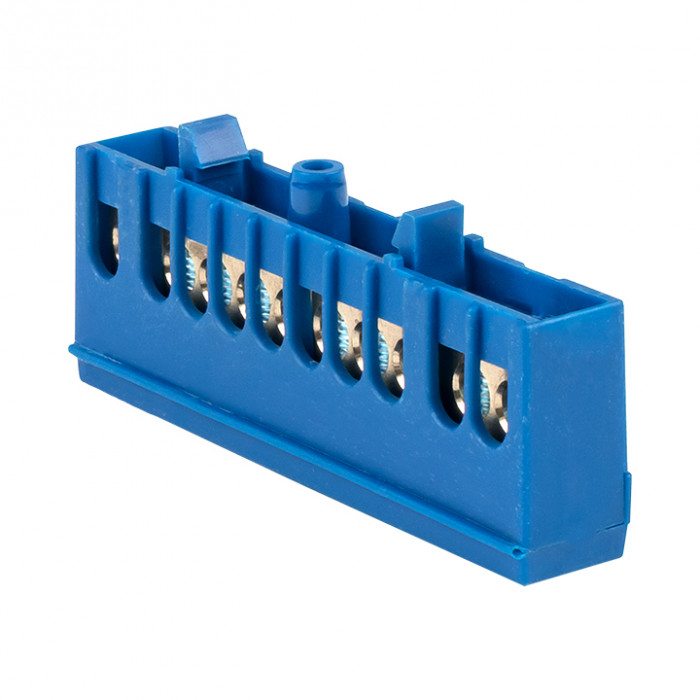Шина "0" N (6х9мм) 10 отверстий латунь синий изолированный корпус на DIN-рейку EKF PROxima