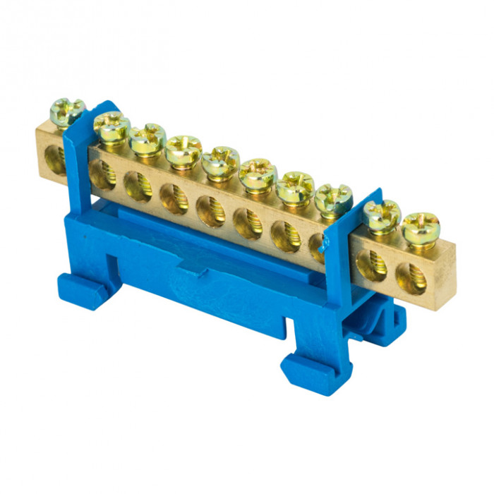 Шина "0" N (6х9мм) 10 отверстий латунь синий изолятор тип "Стойка" на DIN-рейку розничный стикер EKF PROxima