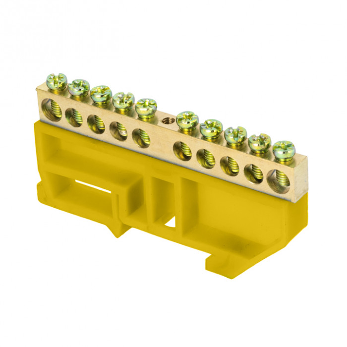 Шина "0" N (6х9мм) 10 отверстий латунь желтый изолятор на DIN-рейку розничный стикер EKF PROxima
