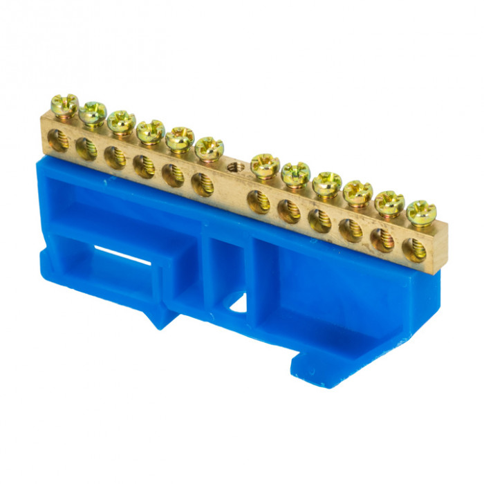 Шина "0" N (6х9мм) 12 отверстий латунь синий изолятор на DIN-рейку розничный стикер EKF PROxima