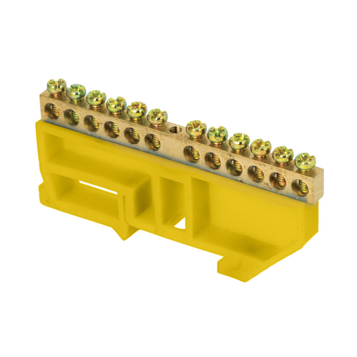 Шина "0" N (6х9мм) 12 отверстий латунь желтый изолятор на DIN-рейку EKF PROxima
