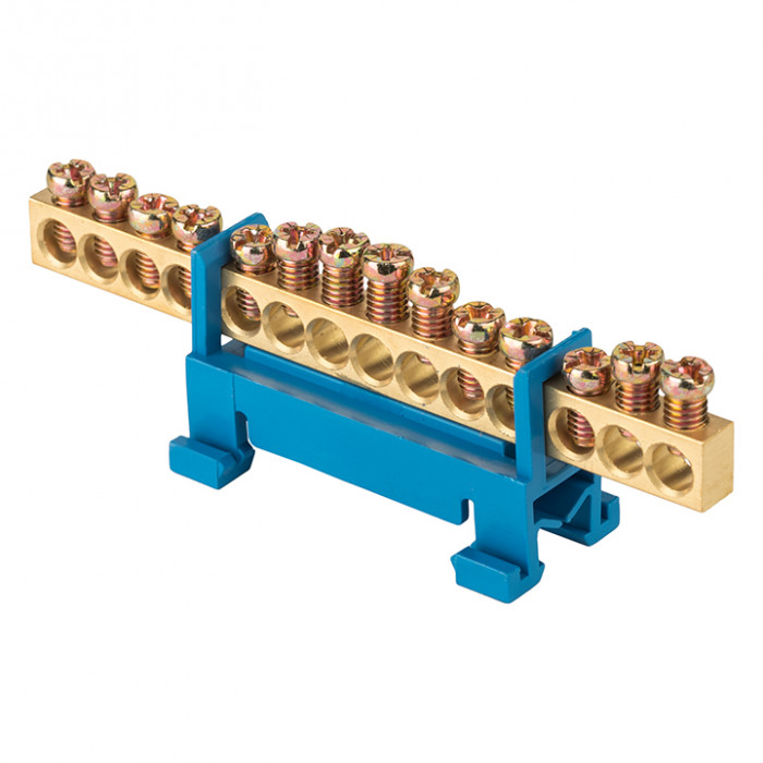 Шины предназначены для присоединения нулевых проводников (шина N) и заземления (шина PE). Шины выполнены из латуни и никелированной латуни. Нулевая шина устанавливается на изоляторе.
