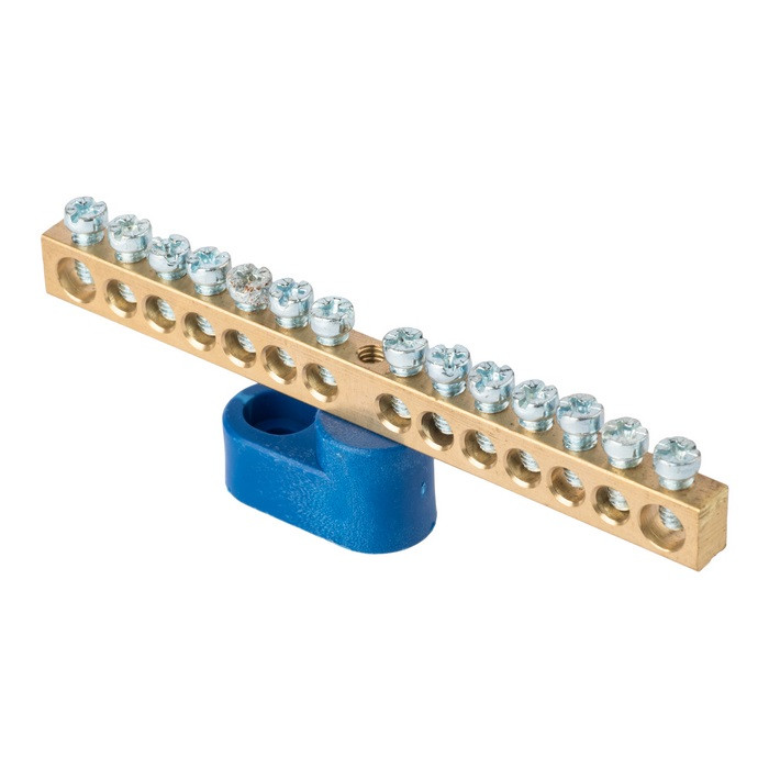 Шина "0" N (6х9мм) 14 отверстий латунь синий угловой изолятор EKF PROxima