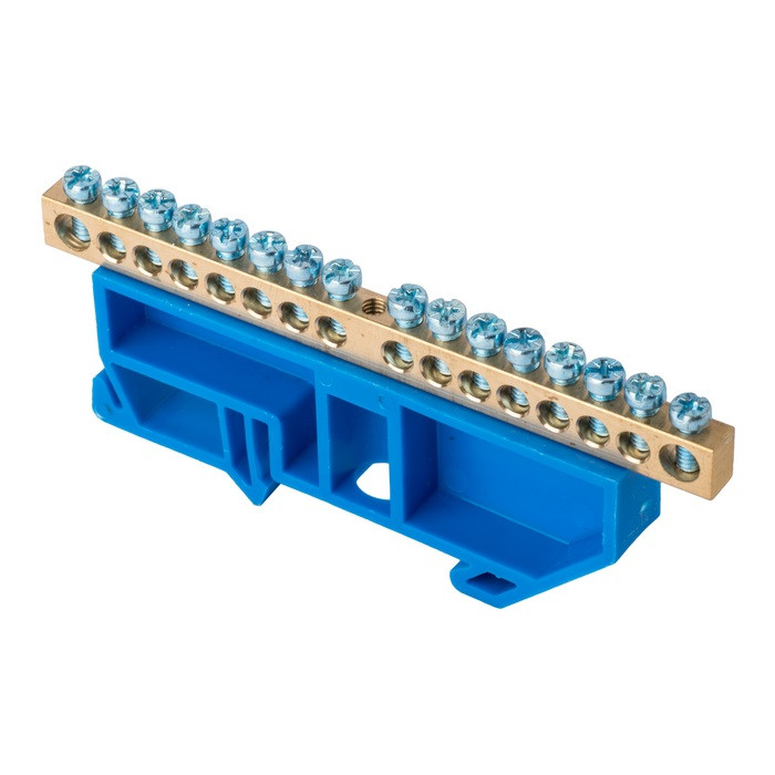 Шина "0" N (6х9мм) 16 отверстий латунь синий изолятор на DIN-рейку EKF PROxima