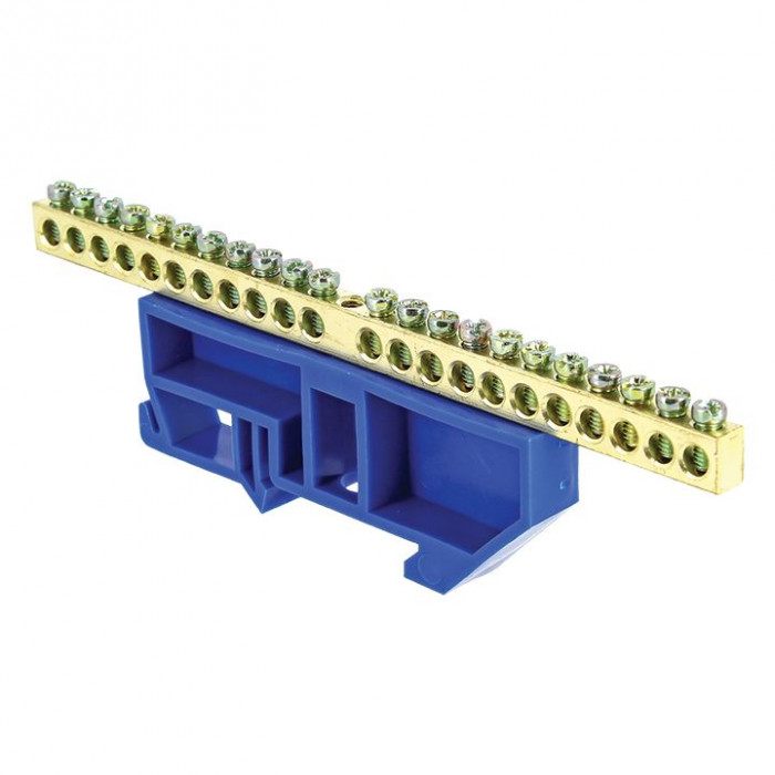 Шина "0" N (6х9мм) 22 отверстия латунь синий изолятор на DIN-рейку EKF PROxima