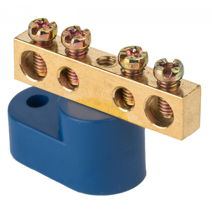 Шина "0" N (6х9мм) 4 отверстия латунь синий угловой изолятор EKF PROxima