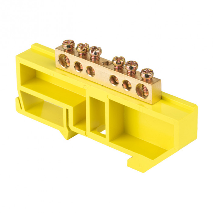 Шина "0" N (6х9мм) 6 отверстий латунь желтый изолятор на DIN-рейку EKF PROxima