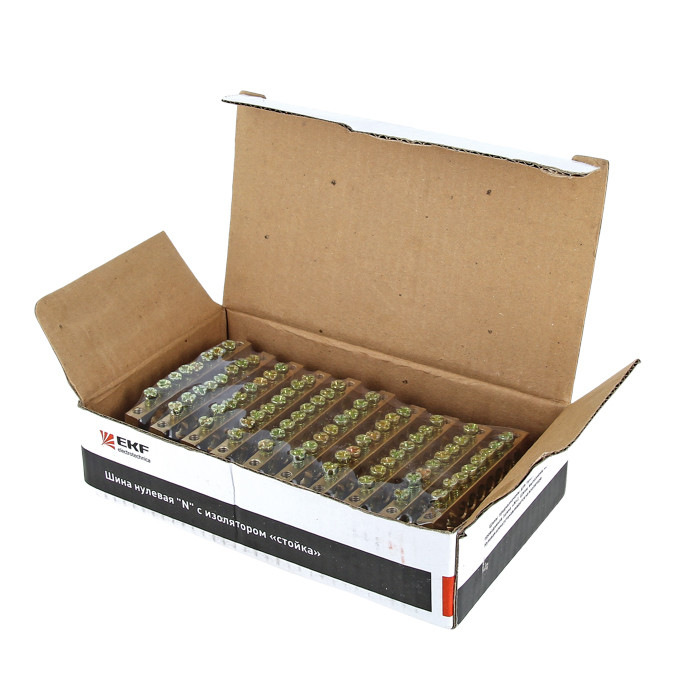 Шины предназначены для присоединения нулевых проводников (шина N) и заземления (шина PE). Шины выполнены из латуни и никелированной латуни. Нулевая шина устанавливается на изоляторе.